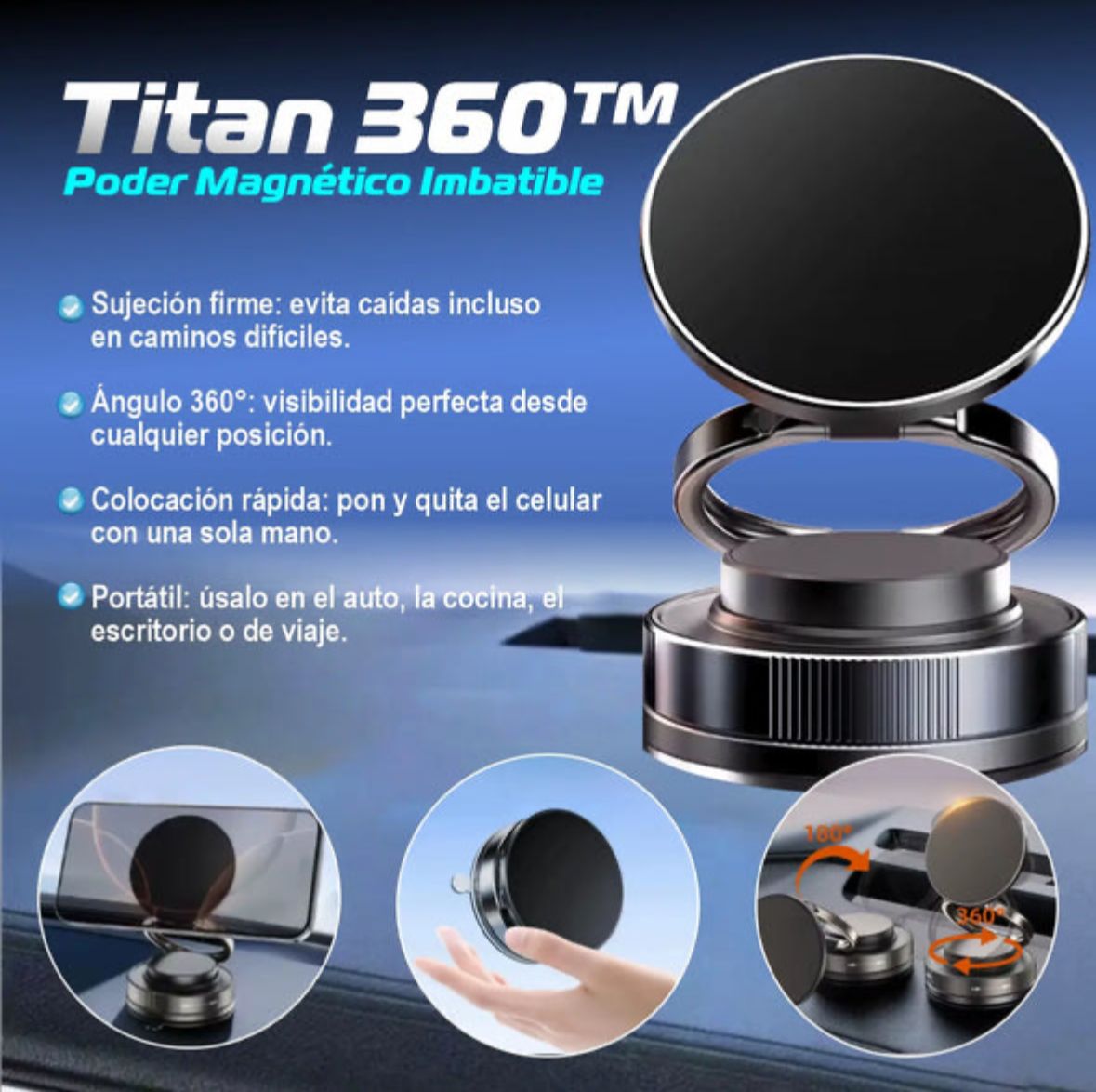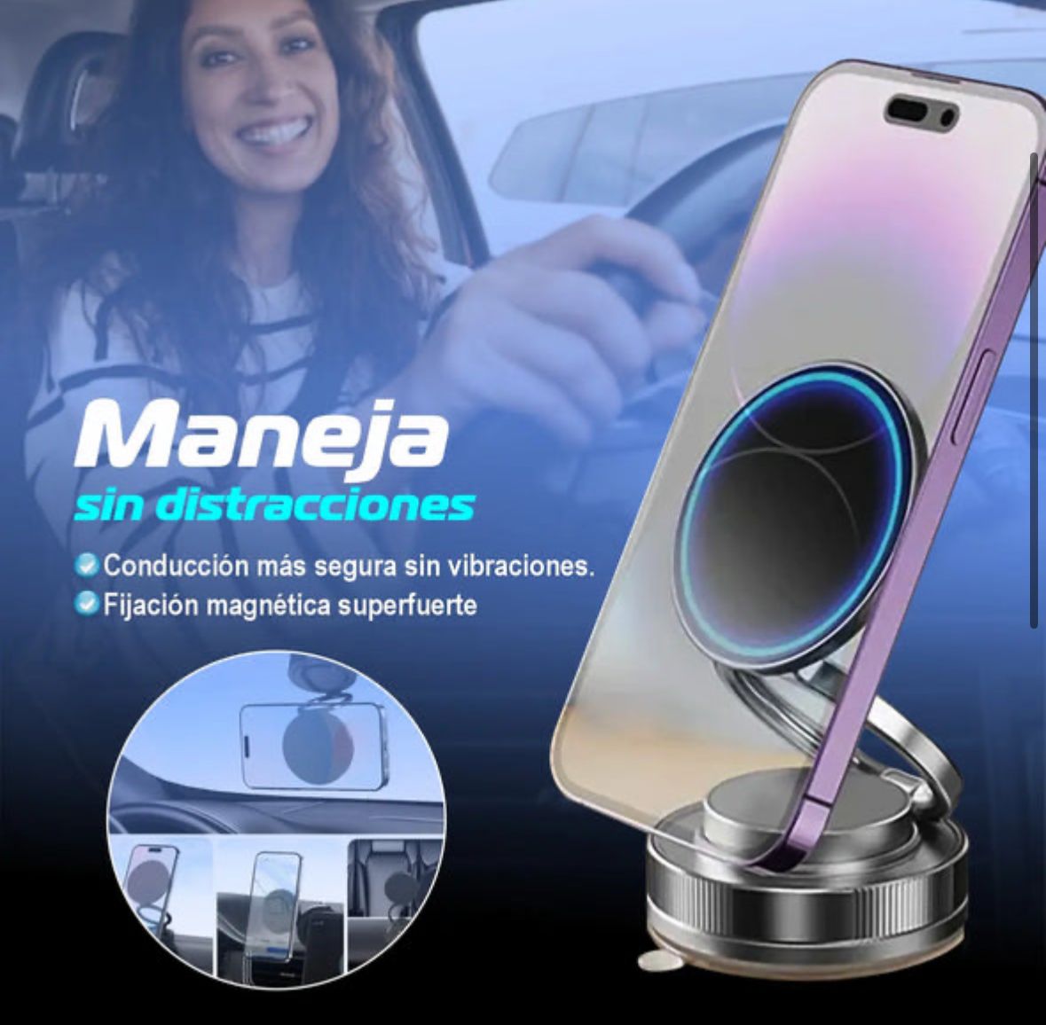 🧲 Soporte magnético 360°: Fuerte, giratorio y compatible con Android y iPhone.
